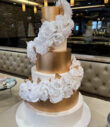 White & Gold Floral Spiral Wedding Cake